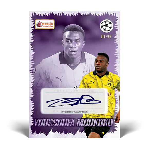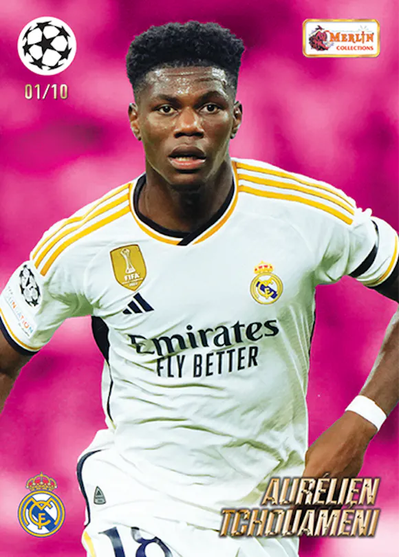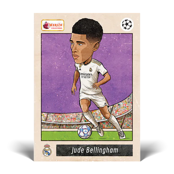 The new UEFA club competitions collection includes all the top players from the 2023/24 season printed on vintage Merlin designs! Look out for Merlin’s Most Wanted, Shiny Logo cards, Young Guns, Legends of the Game, Fan Favourites, Vintage Illustrated cards plus the ultra-rare Merlin Dream Team.